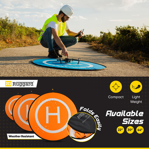 The Ruggard DLP-44 44-inch Drone Landing Pad provides a safe, clean, and highly visible landing zone for your drone in any environment. Designed for outdoor and professional drone operations, it helps protect your drone and gimbal from dust, dirt, sand, rocks, and flying debris during takeoff and landing.